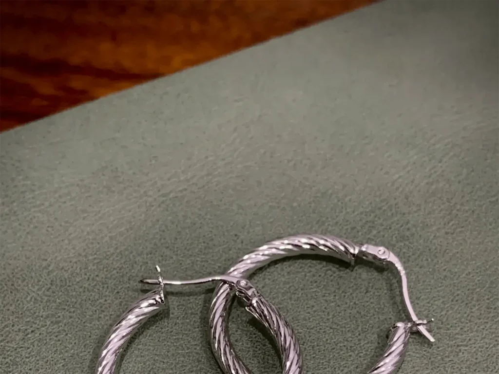 This pair of Handmade 925 Sterling Silver Twisted Hoops features a premium White Gold Plating, designed for exceptional durability and lasting shine. Due to this high-quality finish, they are safe for daily wear, including showering and sleeping, without frequent removal. Please follow the recommendations below for the best long-term care:I. Daily Wear and Cleaning